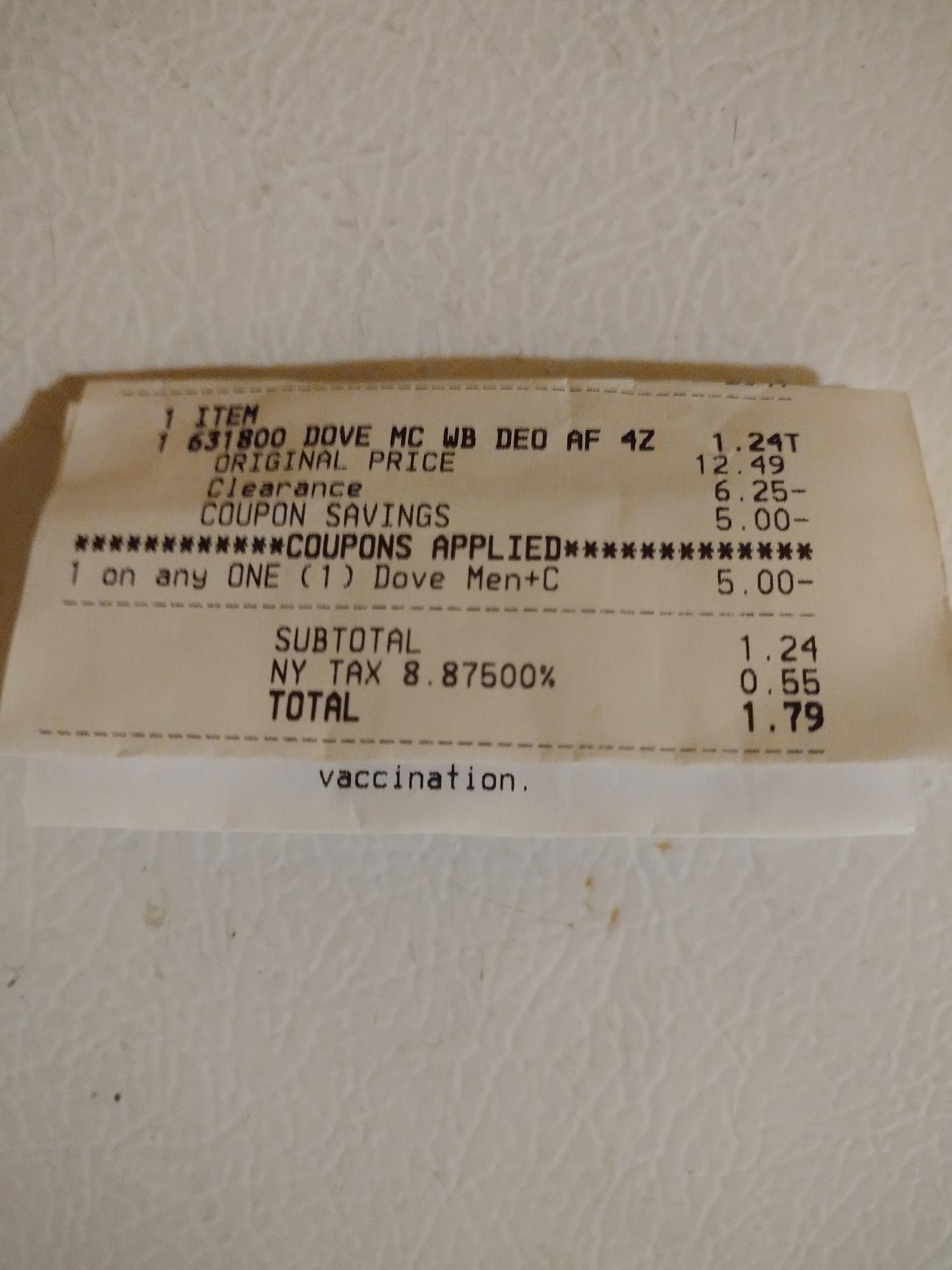 Found some Dove whole body deodorant spray on clearance for $6.24. We have a nice $5 digital plus Fetch is giving back 3,000 points..limit 4. Both were priced at $6.24. The other one is on a different receipt.